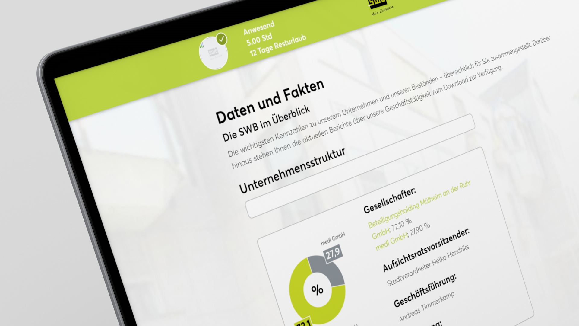 Durch die Anbindung der Personalsoftware können über das Intranet zum Beispiel die Arbeitszeiten erfasst werden (auch im Homeoffice), Urlaubsanträge gestellt und Urlaubsübersichten geladen werden. Ein internes WIKI (FAQ-Tool), verschiedene andere Anträge und vieles mehr machen aus dem Intranet ein effizientes Tool für die täglichen Aufgaben im Unternehmen, das gerne genutzt wird.